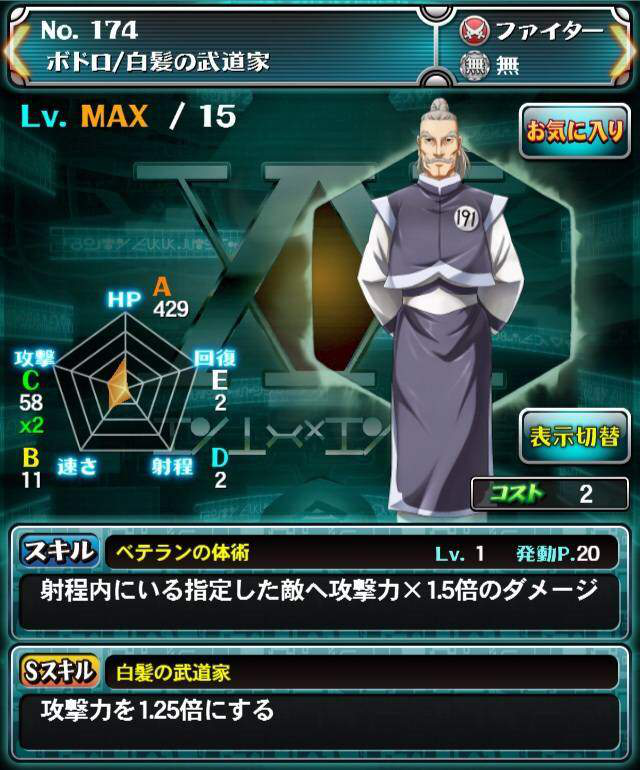 Cost | 2 | Max Lv | 15 | 念 | 未学习 | ||||