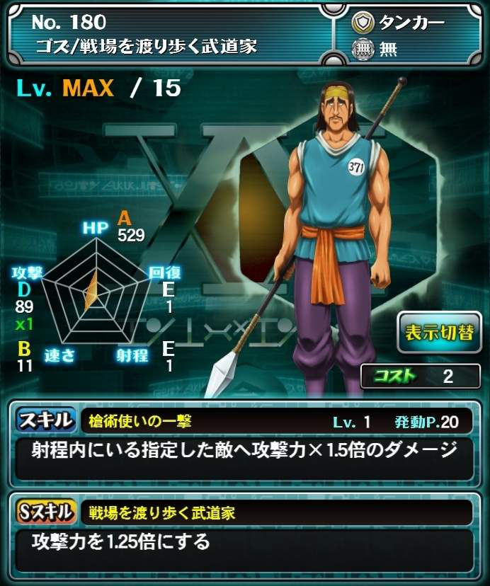 Cost | 2 | Max Lv | 15 | 念 | ![]() | ||||