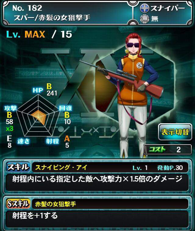 支援技能名称 | 赤髪の女狙撃手 | ||||||||