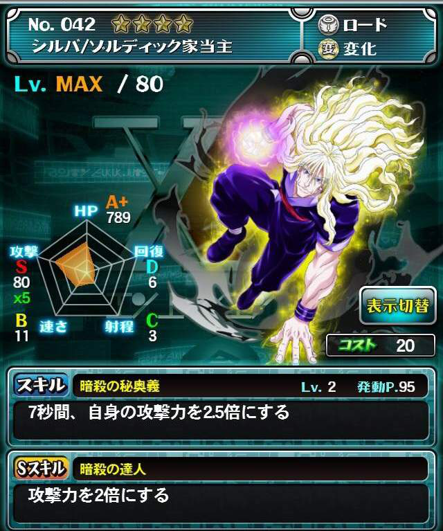 ![]() | 名称 | シルバ/ゾルディック家当主 | 类型 | 未归类猎人 | |||||