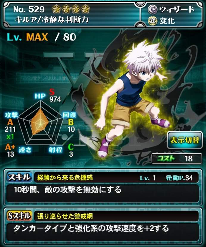![]() | 名称 | キルア/冷静な判断力 | 类型 | 未归类猎人 | |||||