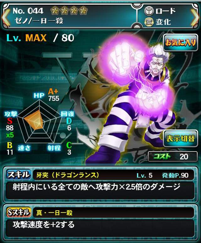 Cost | 20 | Max Lv | 80 | 念 | 30px变化系 | ||||