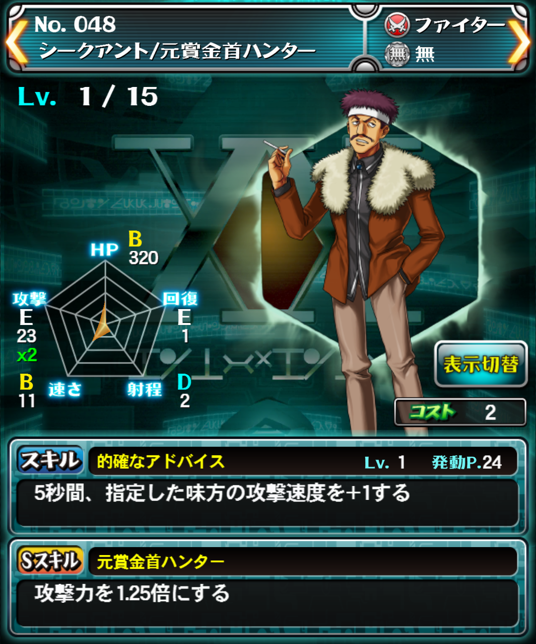 Cost | 2 | Max Lv | 15 | 念 | ![]() | ||||