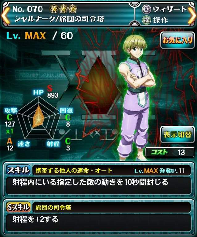 Cost | 13 | Max Lv | 60 | 念 | ![]() | ||||