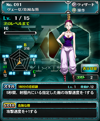 Cost | 2 | Max Lv | 15 | 念 | ![]() | ||||