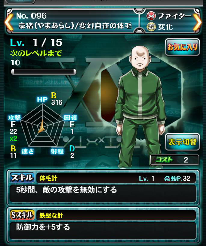 Cost | 2 | Max Lv | 15 | 念 | 30px变化系 | ||||