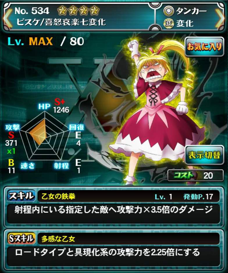 Cost | 20 | Max Lv | 80 | 念 | 未学习 | ||||