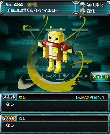 ![]() | 名称 | チョコロボくん/レアイエロー | 类型 | 未归类猎人 | |||||