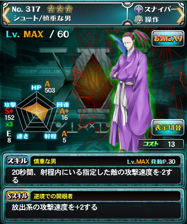 Cost | 13 | Max Lv | 60 | 念 | ![]() | ||||