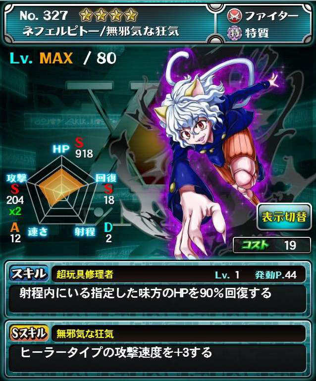 Cost | 19 | Max Lv | 80 | 念 | ![]() | ||||