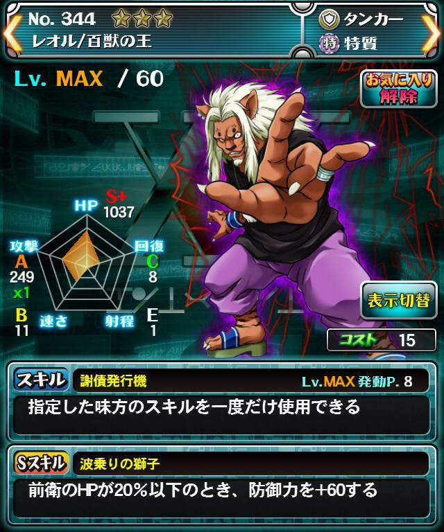 Cost | 15 | Max Lv | 60 | 念 | ![]() | ||||