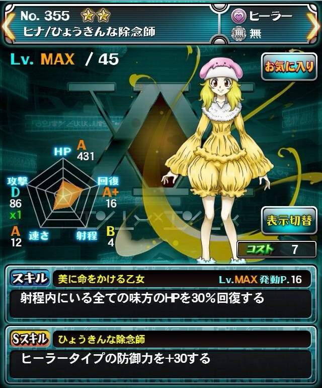 Cost | 7 | Max Lv | 45 | 念 | 未学习 | ||||