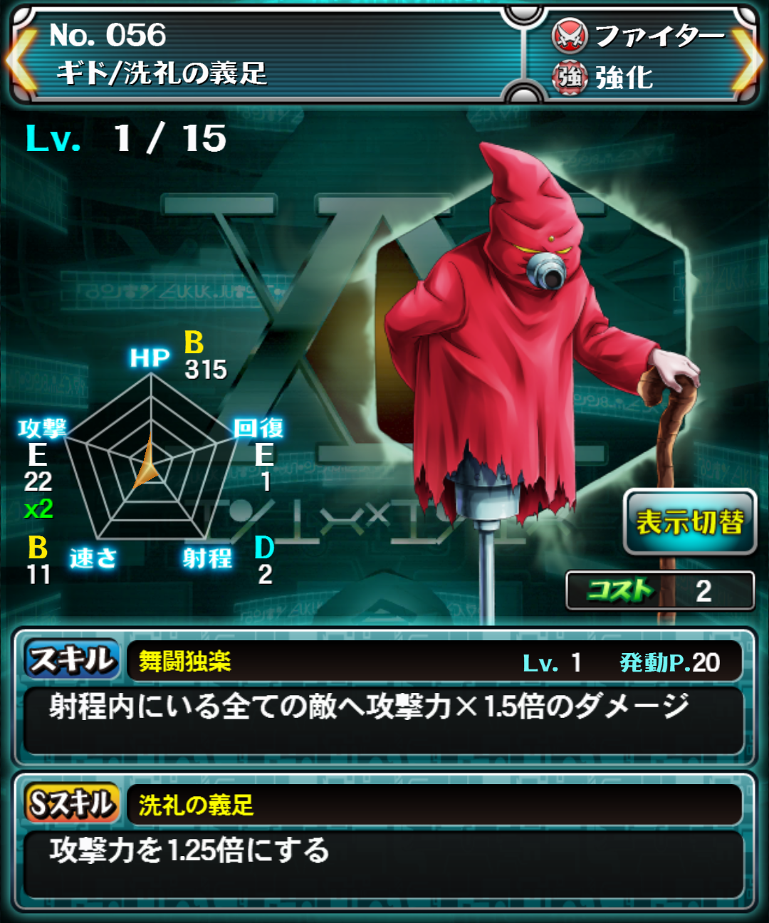 说明 | 射程内にいる全ての敌へ攻撃力×1.5倍のダメージ | ||||||||