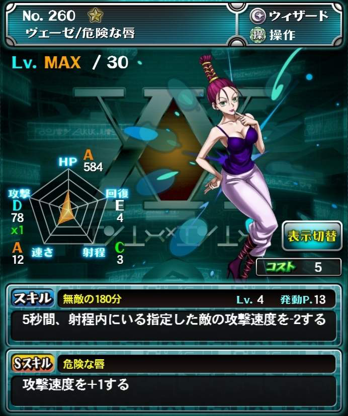 Cost | 5 | Max Lv | 30 | 念 | ![]() | ||||