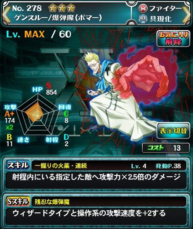 Cost | 13 | Max Lv | 60 | 念 | 30px具现化系 | ||||