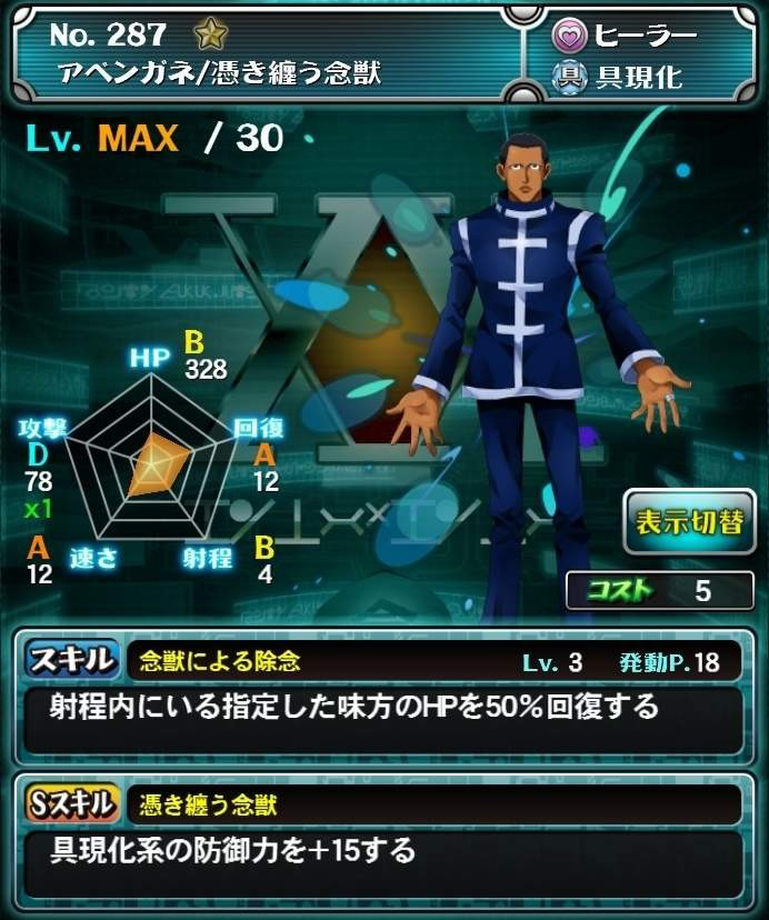 Cost | 5 | Max Lv | 30 | 念 | 30px具现化系 | ||||